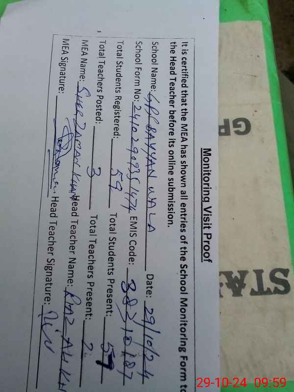 | EMIS Code: 38310187 | Name of School: GPS BAYYAN WALA | |||