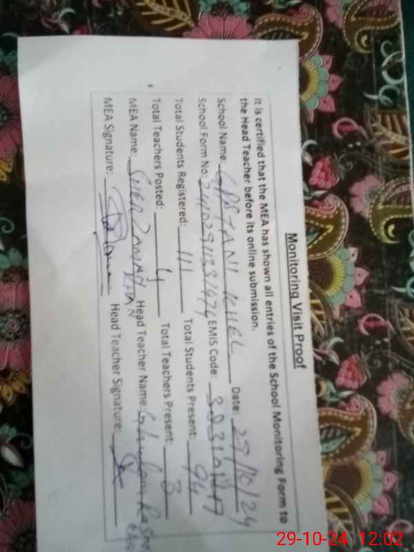 | EMIS Code: 38310147 | Name of School: GPS TANI KHEL P/O KAMAR MUSHANI ISA KHEL | |||