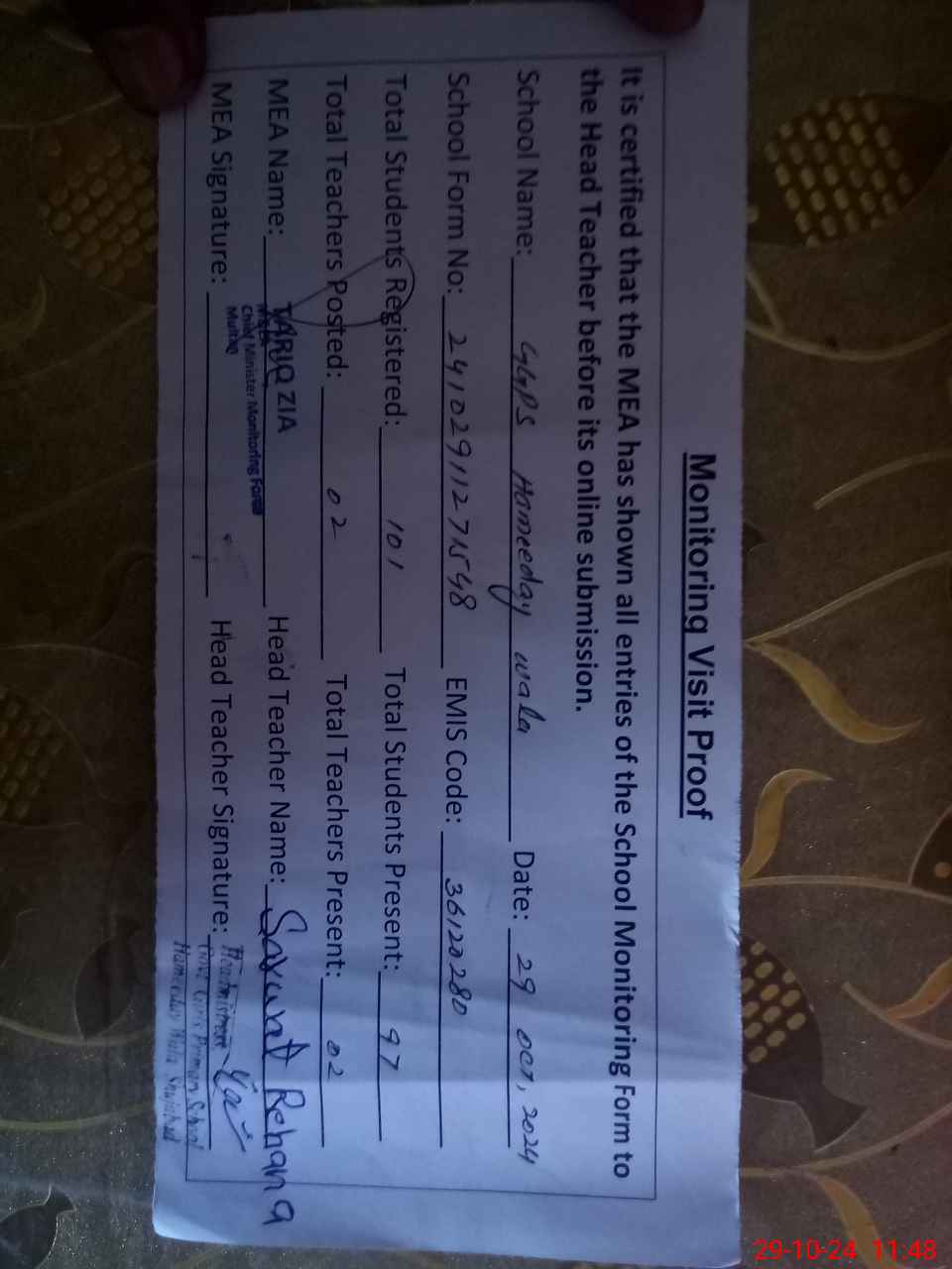 | EMIS Code: 36120280 | Name of School: GGPS HAMEEDAY WALA SHUJABAD DISTT. MULTAN | |||