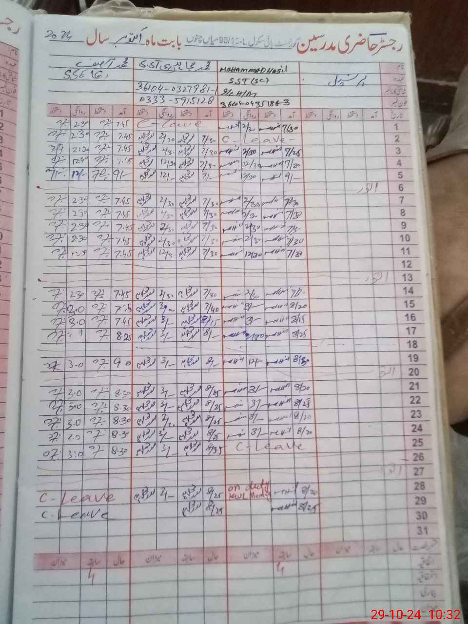 | Name: MHa**** Designation: (School Headmaster's/Headmistress's) S.S.T.(Science) Phone/Cell Number: 03**** |