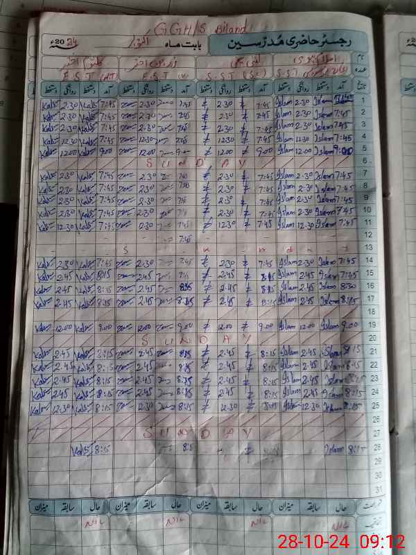 | CNIC | Full Name | Designation | R/C | Absence During Last Calender Month |