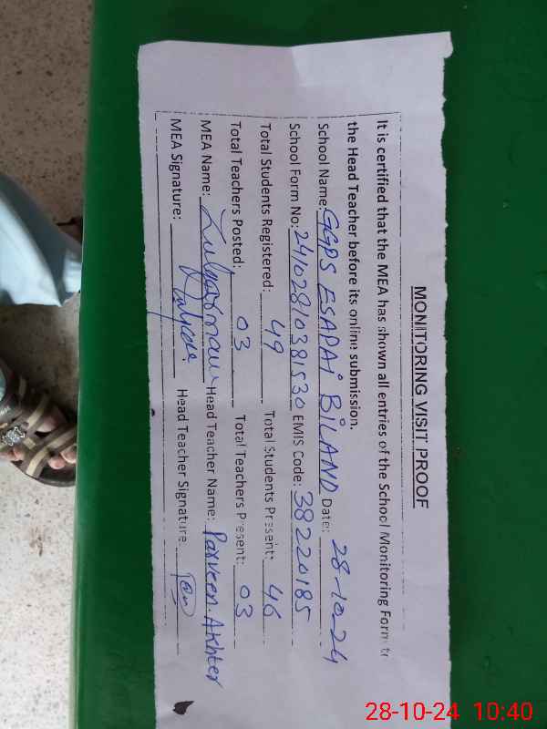 | EMIS Code: 38220185 | Name of School: GGPS ESA PAI BILAND | |||