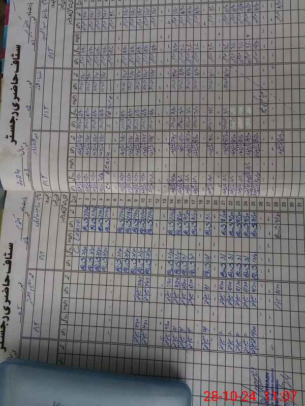 | CNIC | Full Name | Designation | R/C | Absence During Last Calender Month |