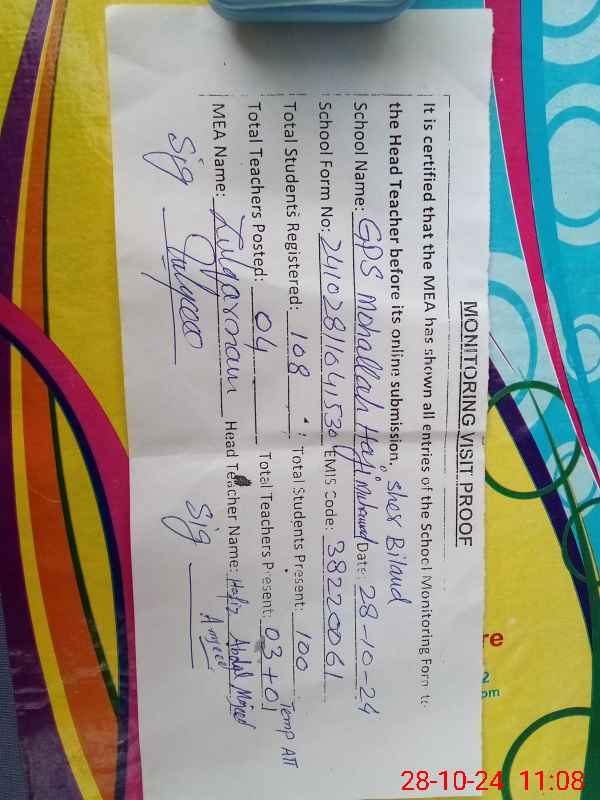 | EMIS Code: 38220061 | Name of School: GPS MOHALLA HAJI MUHAMMAD SHER BILAND | |||