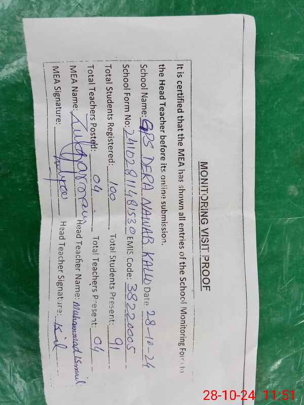 | EMIS Code: 38220005 | Name of School: GPS DERA NAWAB KALOO | |||