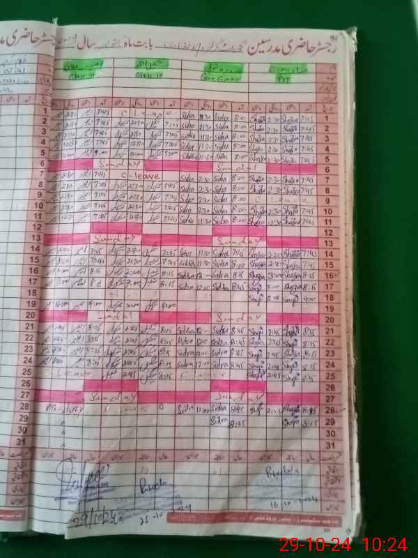 | CNIC | Full Name | Designation | R/C | Absence During Last Calender Month |