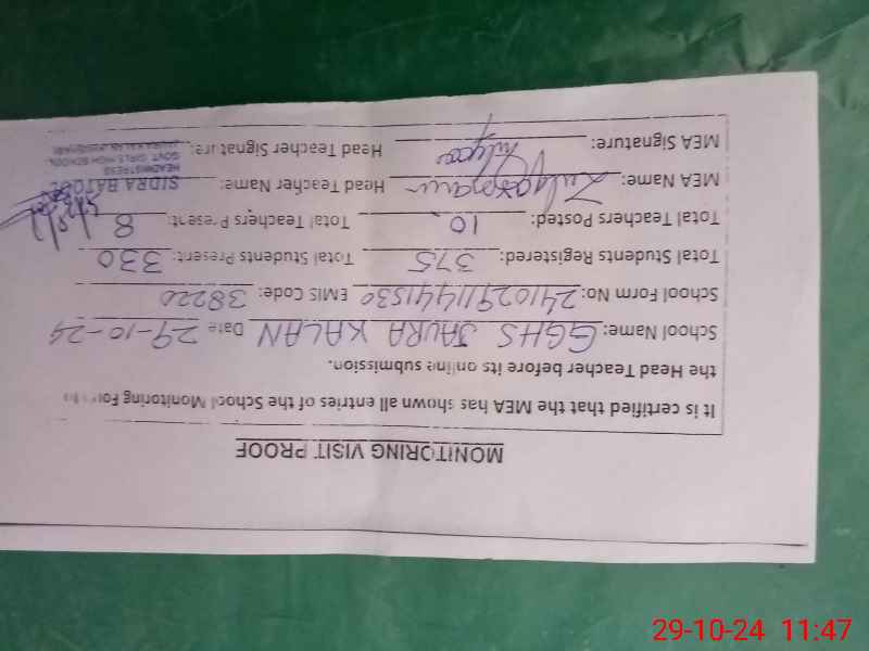 | Certified that this School was Inspected by the Undersigned MEA/DMO Today and the Information Stated Above is as Per Record. | |||||