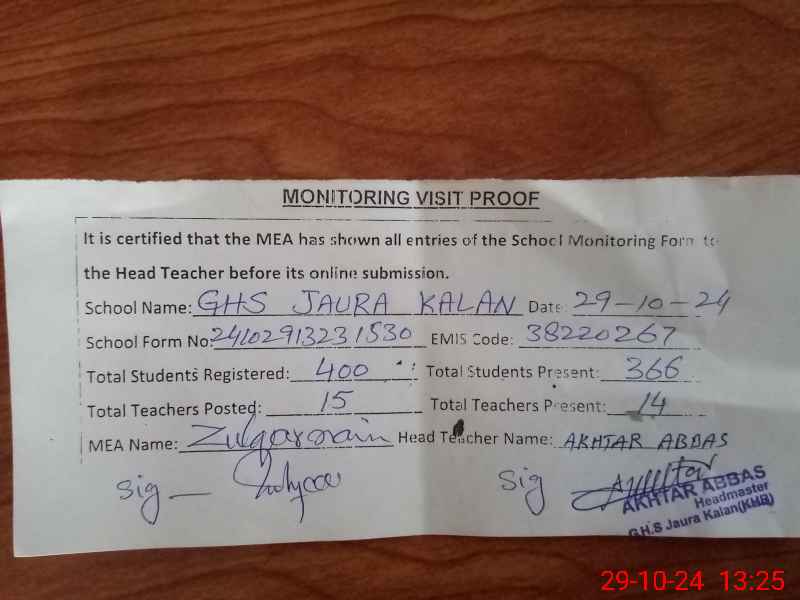 | EMIS Code: 38220267 | Name of School: GHS JAURA KALAN | |||