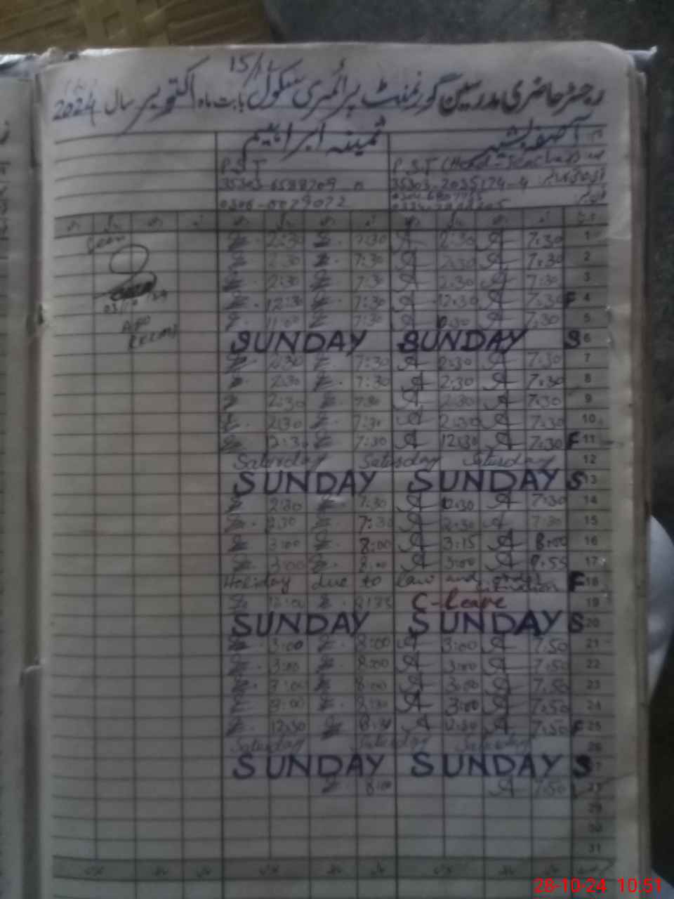 | Name: As**** Ba**** Designation: (School Headmaster's/Headmistress's) PST Phone/Cell Number: 03**** |