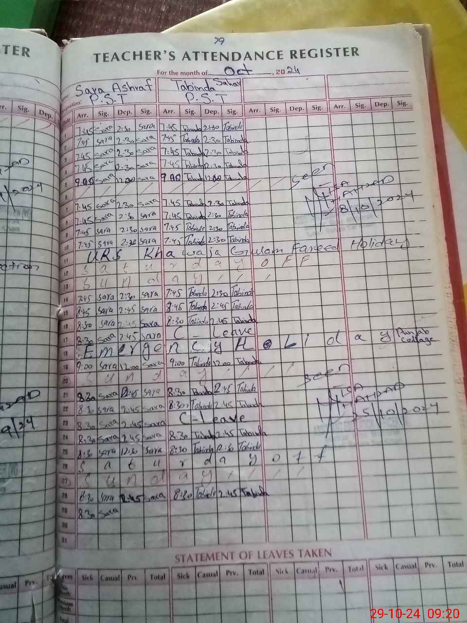 | 31**** | Ta**** Sa**** | 1 | 1 | 0 | 0 | 0 | 0 | 0 | 0 | 0 | 0 | 0 | Absent (Un-Authorized) |