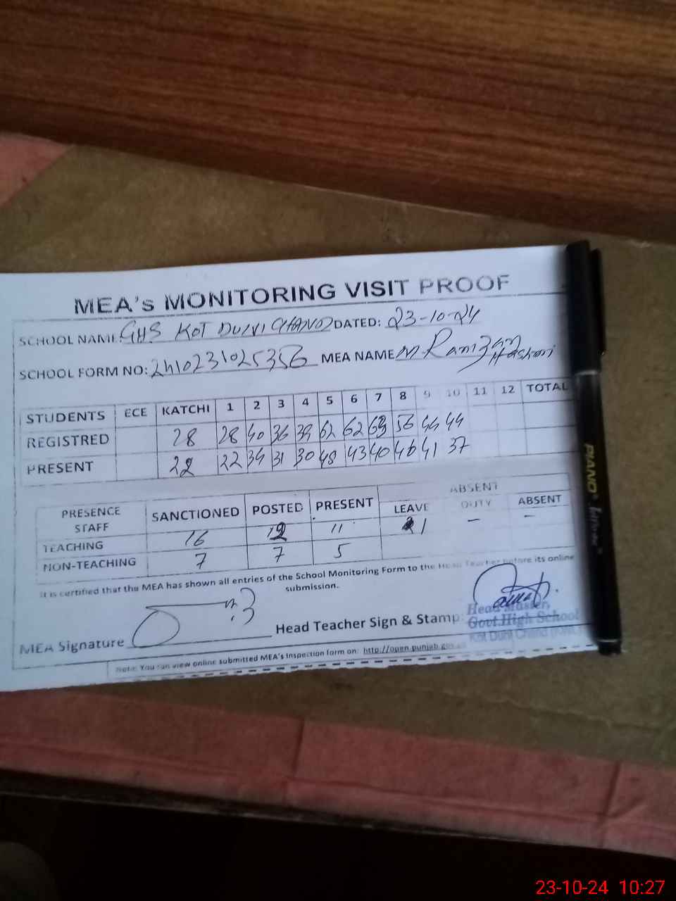 | EMIS Code: 36410024 | Name of School: GHS KOT DUNI CHAND, ABDUL HAKIM | |||