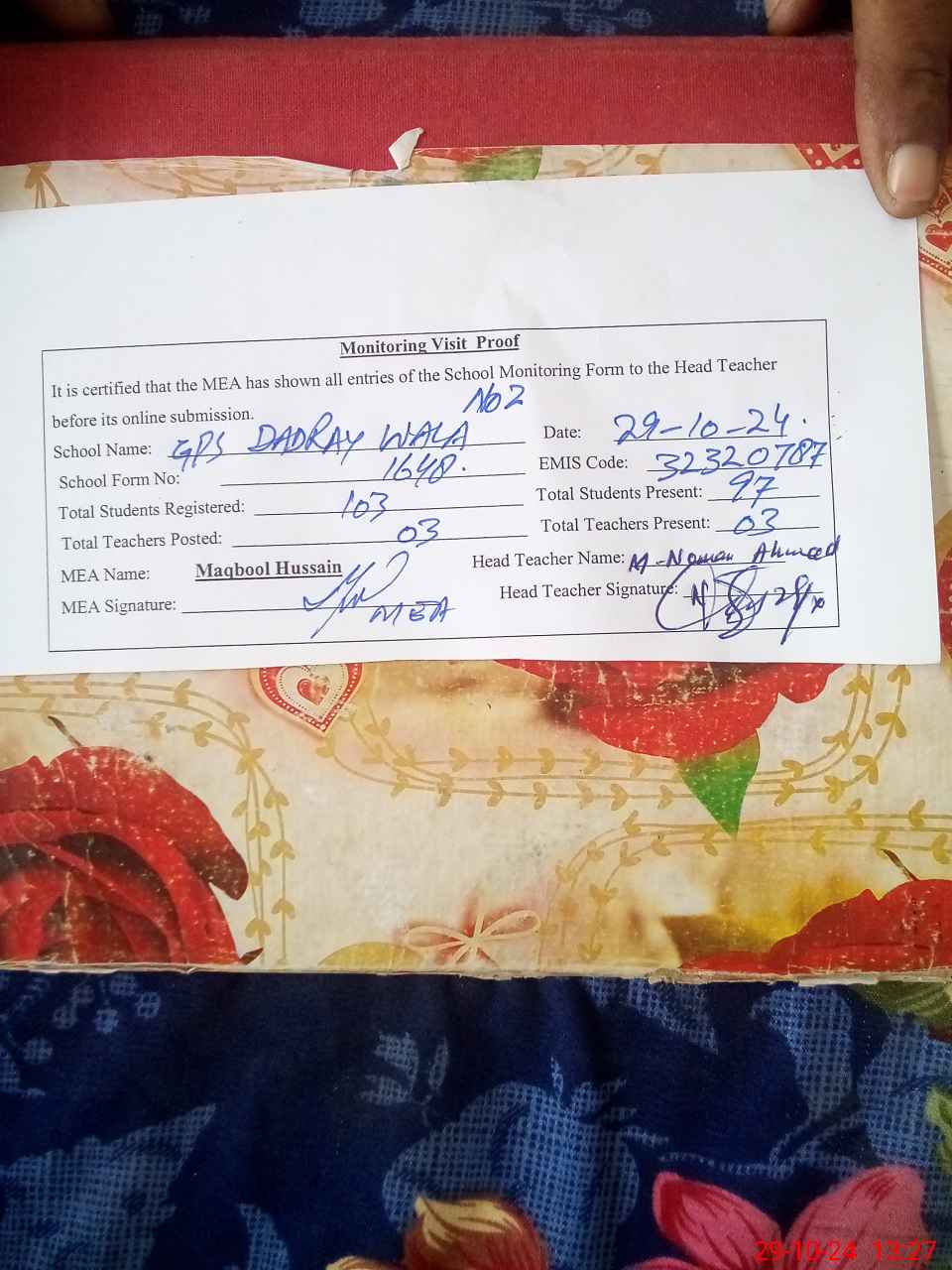 | EMIS Code: 32320787 | Name of School: GPS DADRAY WALA NO. 2 | |||