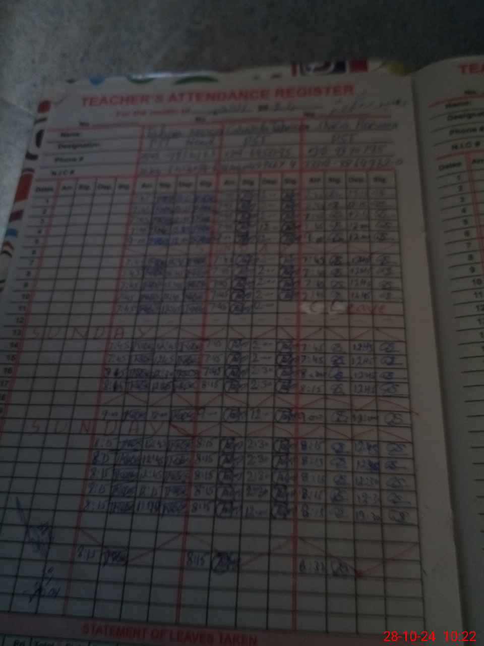 | CNIC | Full Name | Designation | R/C | Absence During Last Calender Month |