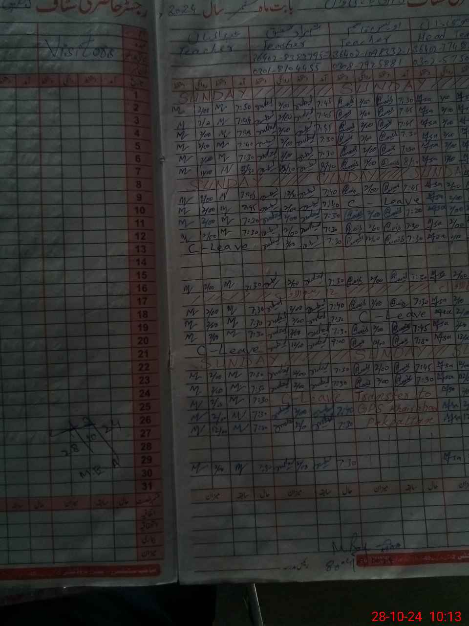 | Leave | Duty | Absent | Maternity | Medical | Ex- Pak |