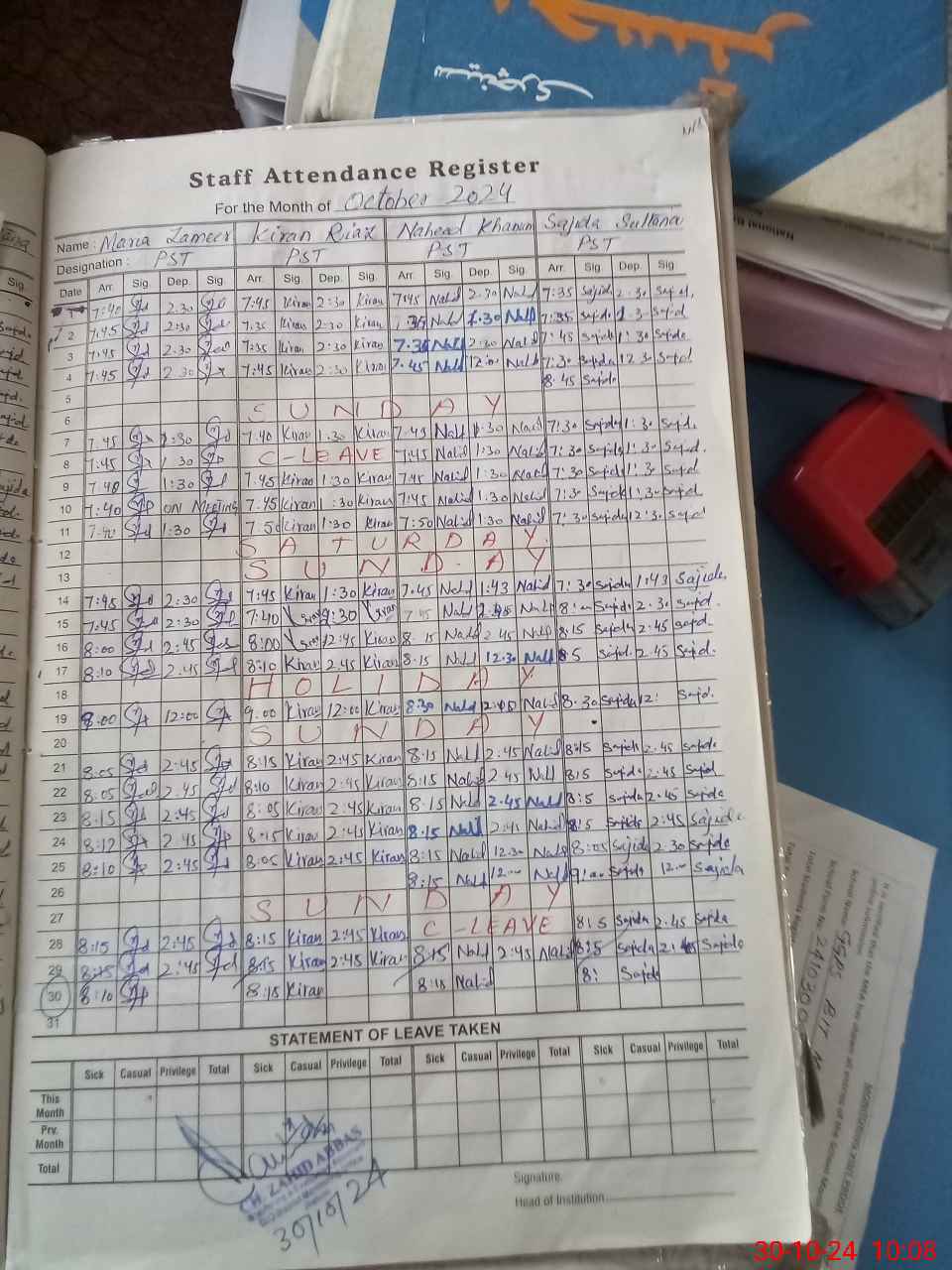 | Leave | Duty | Absent | Maternity | Medical | Ex- Pak |