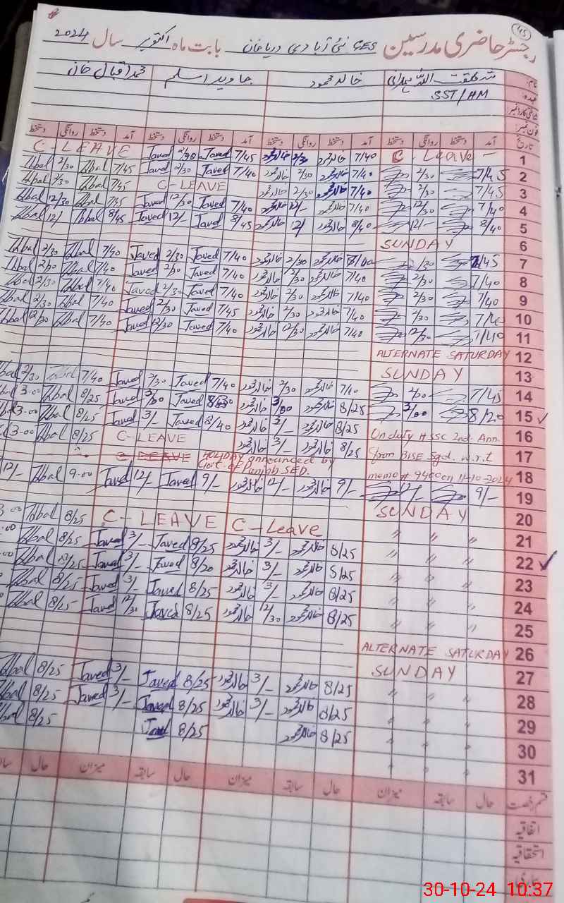 | 38**** | Sh**** Ul**** Ha**** | SST | Regular | 0 | 0 | 0 | 0 | 0 | 0 | 0 | 0 | 0 | Exam Duty |