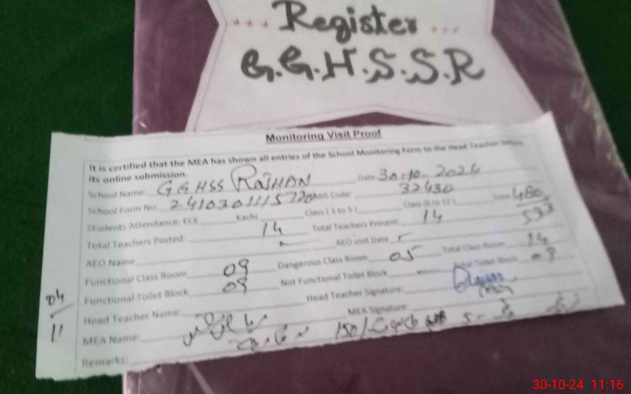 | EMIS Code: 32430001 | Name of School: GGHSS ROJHAN | |||
