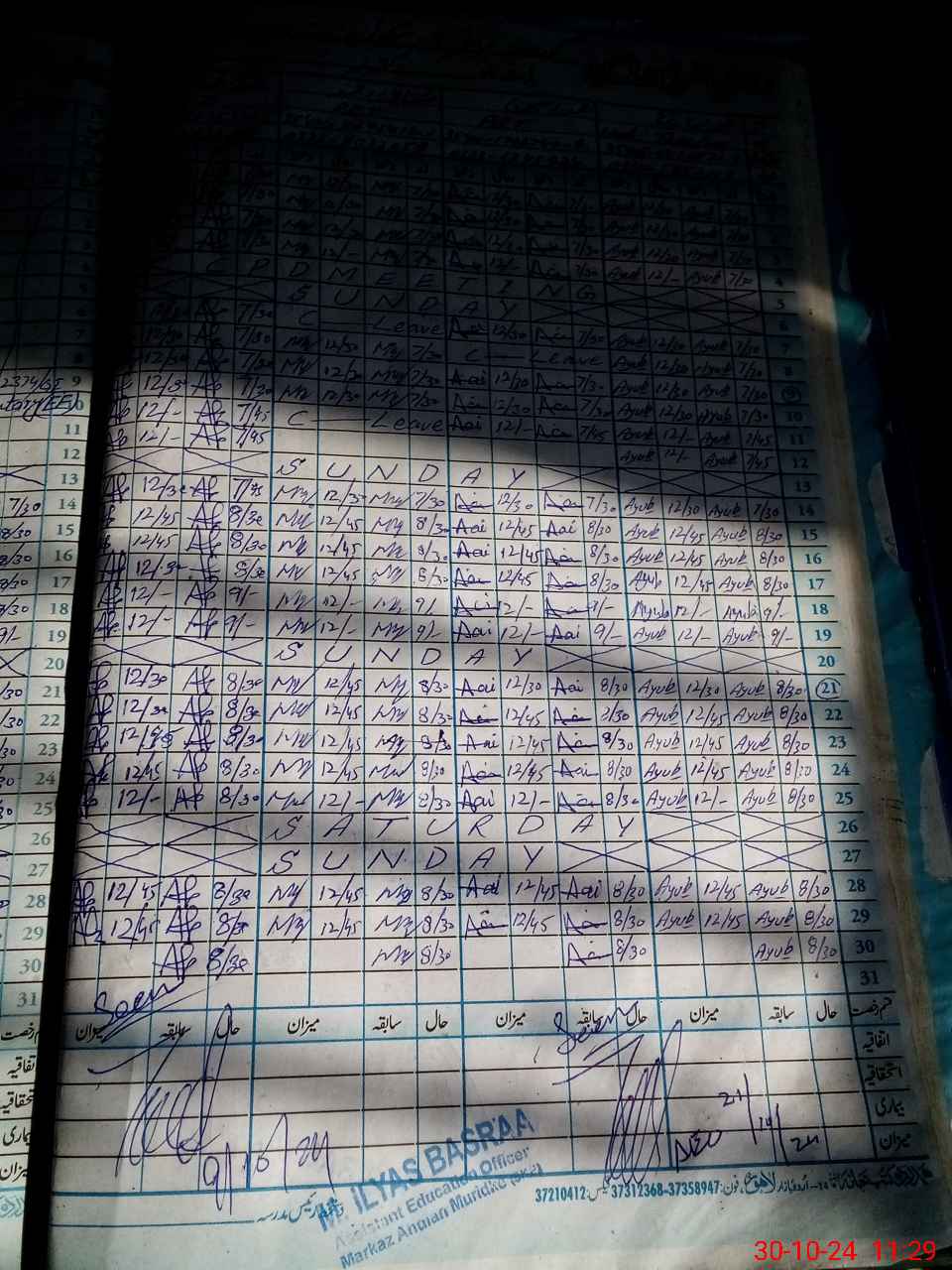 | CNIC | Full Name | Designation | R/C | Absence During Last Calender Month |