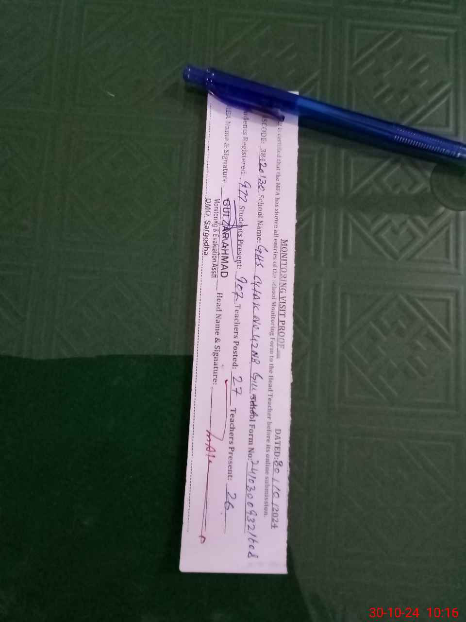 | EMIS Code: 38420130 | Name of School: GHS CHAK NO.42 NB GILL WALA | |||