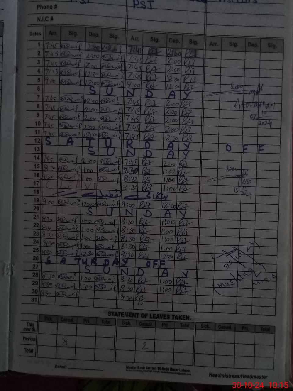 | Name: TA**** NA**** Designation: (School Headmaster's/Headmistress's) PST Phone/Cell Number: 03**** |