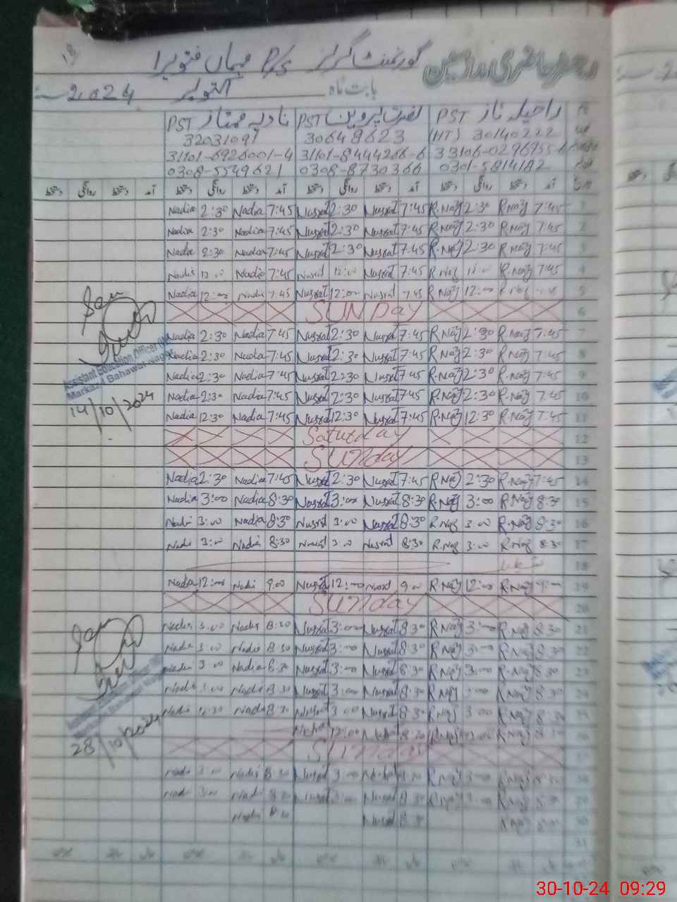 | Monitoring Date: 30-10-2024 | Start Time: 30-10-2024 09:07 AM | End Time: 30-10-2024 10:09 AM | Name of MEA: MU**** SA**** UL**** BN**** | |