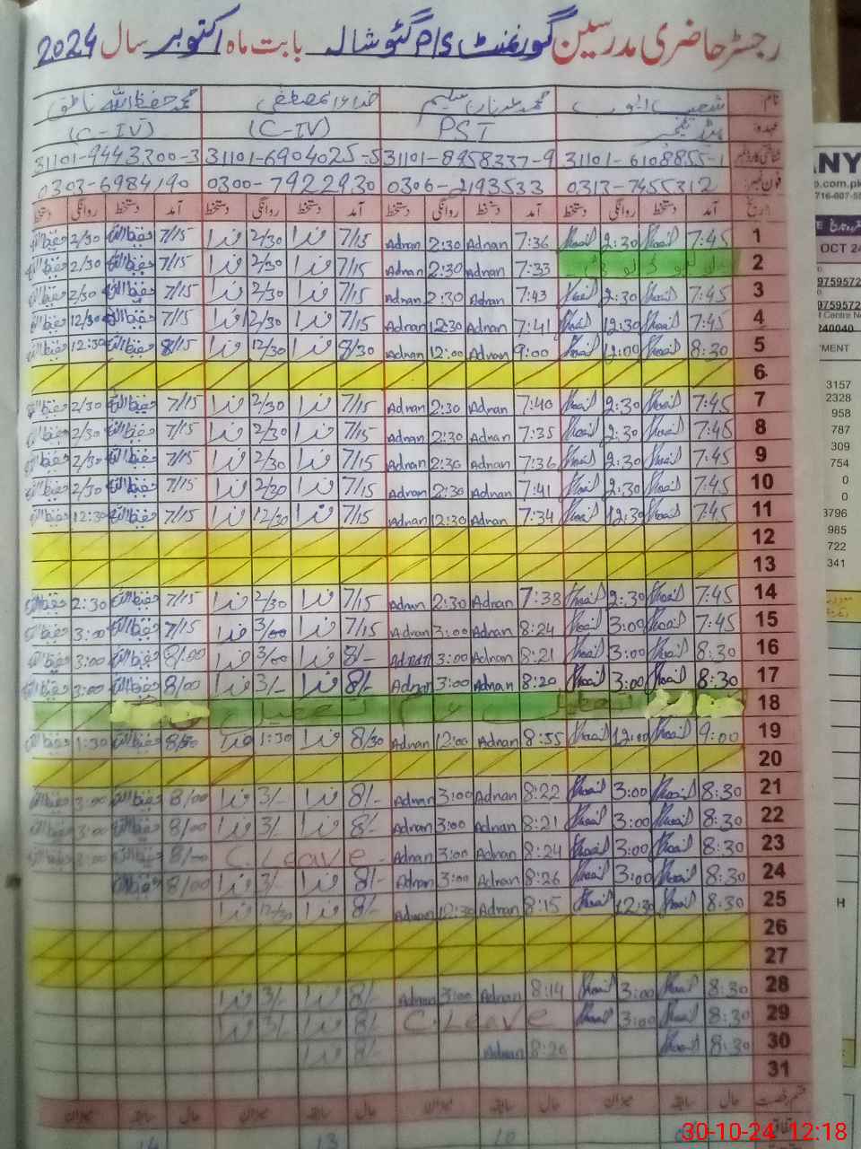 | 31**** | Al**** Ra**** | S G | 0 | 0 | 0 | 0 | 0 | 0 | 0 | 0 | 0 | Absent (Un-Authorized) | |
