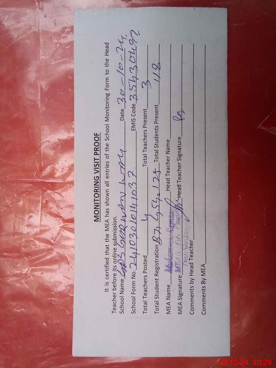 | EMIS Code: 35430497 | Name of School: GPS GURWAN WALI | |||