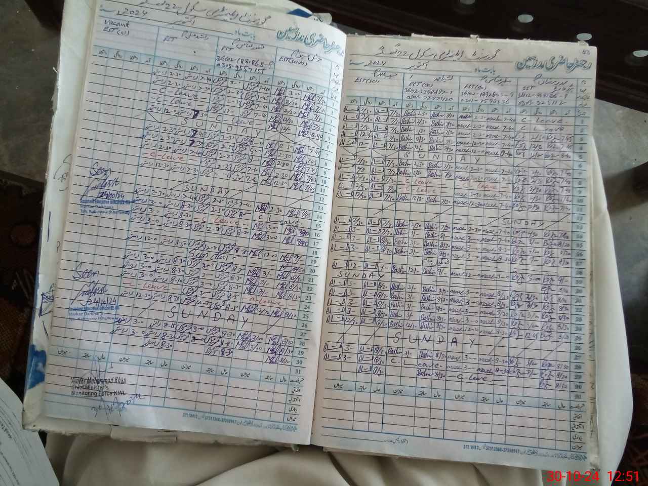 | CNIC | Full Name | Designation | R/C | Absence During Last Calender Month |