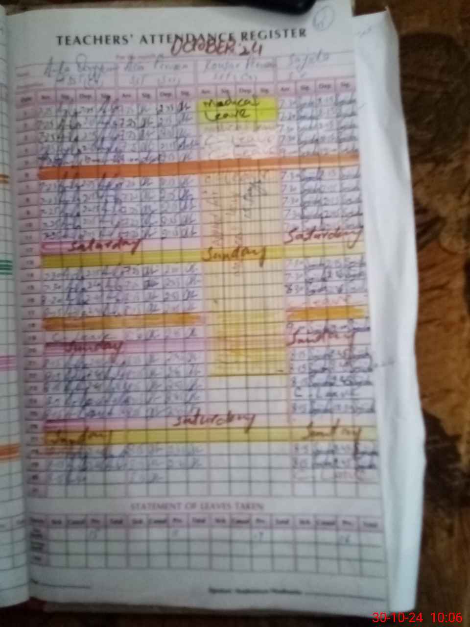 | Leave | Duty | Absent | Maternity | Medical | Ex- Pak |