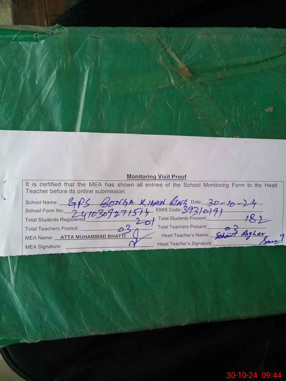 | EMIS Code: 39310191 | Name of School: GPS BUNGA KHAN SINGH | |||