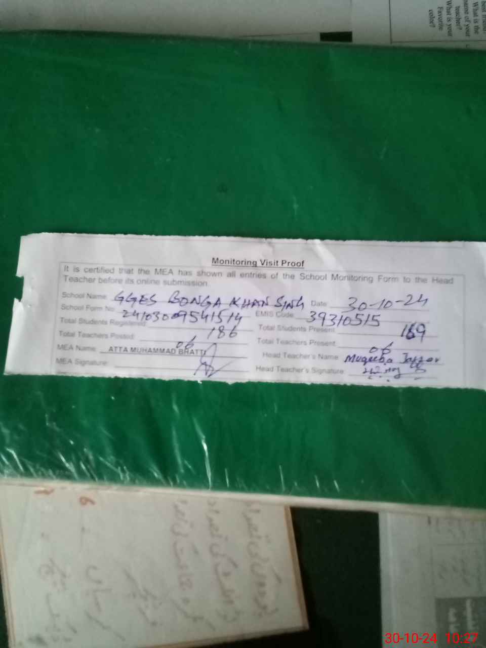 | EMIS Code: 39310515 | Name of School: GGES BONGA KHAN SINGH | |||