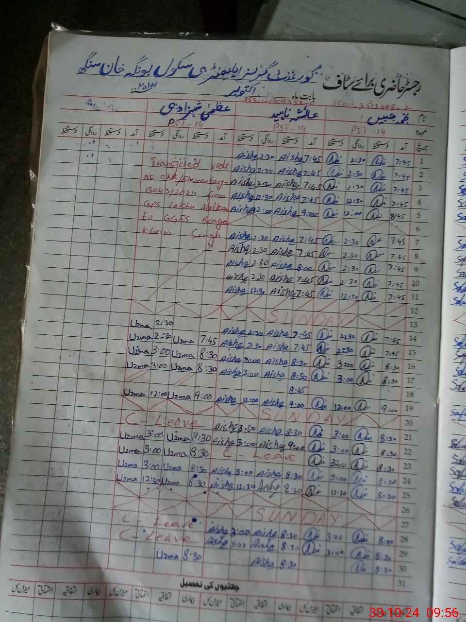 | CNIC | Full Name | Designation | R/C | Absence During Last Calender Month |