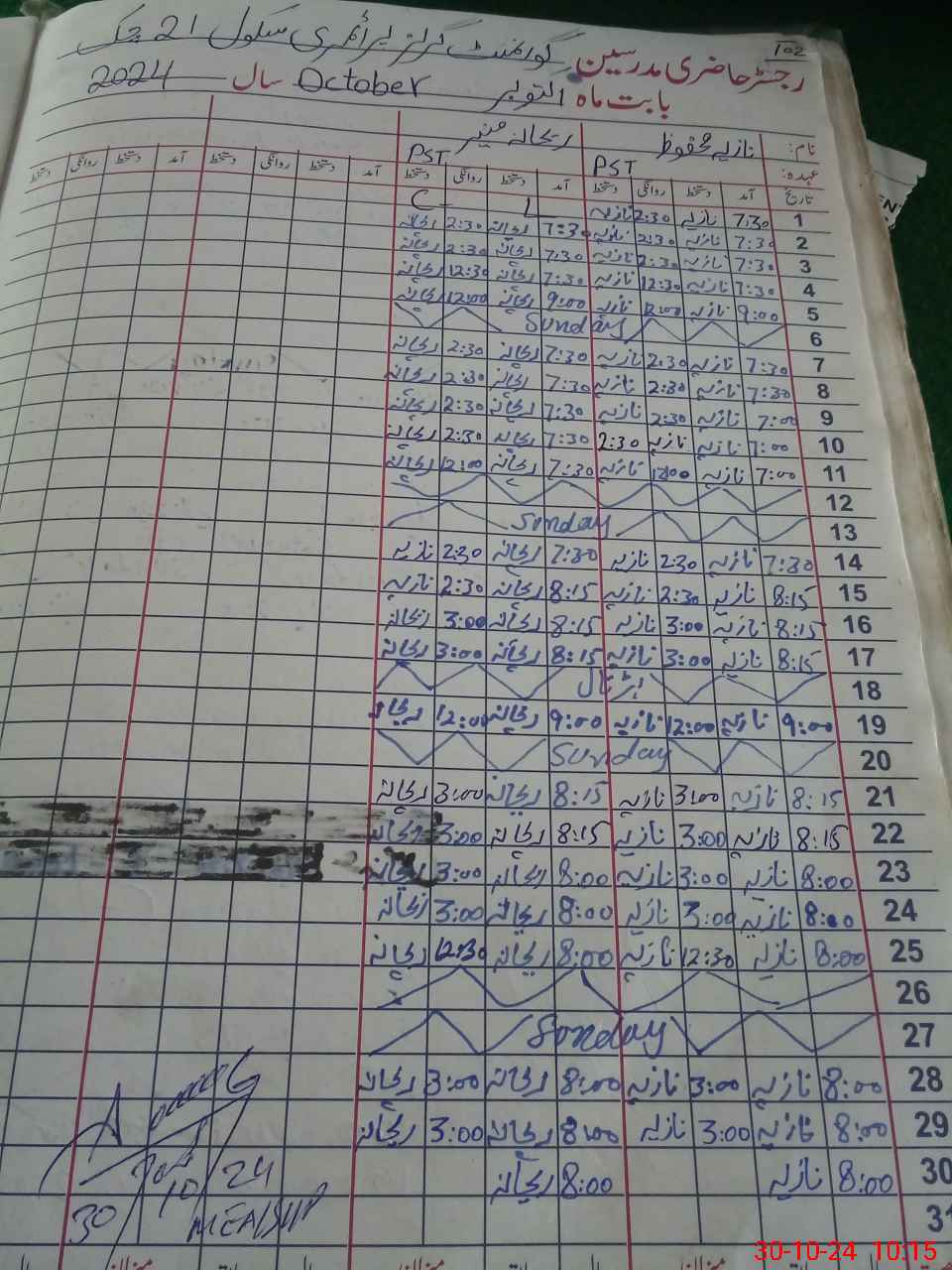 | Monitoring Date: 30-10-2024 | Start Time: 30-10-2024 09:19 AM | End Time: 30-10-2024 10:34 AM | Name of MEA: Au**** Za**** | |