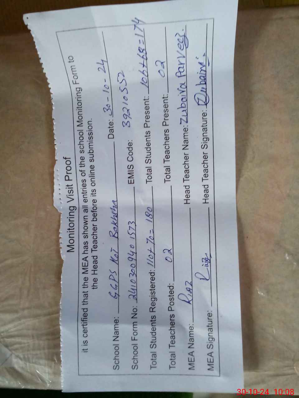 | EMIS Code: 39210552 | Name of School: GGPS KOT BAKHSHA | |||