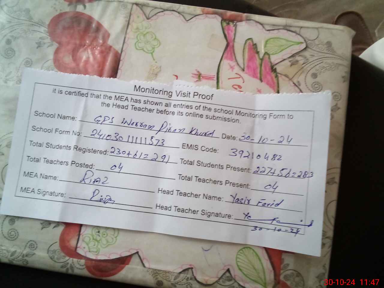 | EMIS Code: 39210482 | Name of School: GPS WARRAH PIRAN KHURD | |||