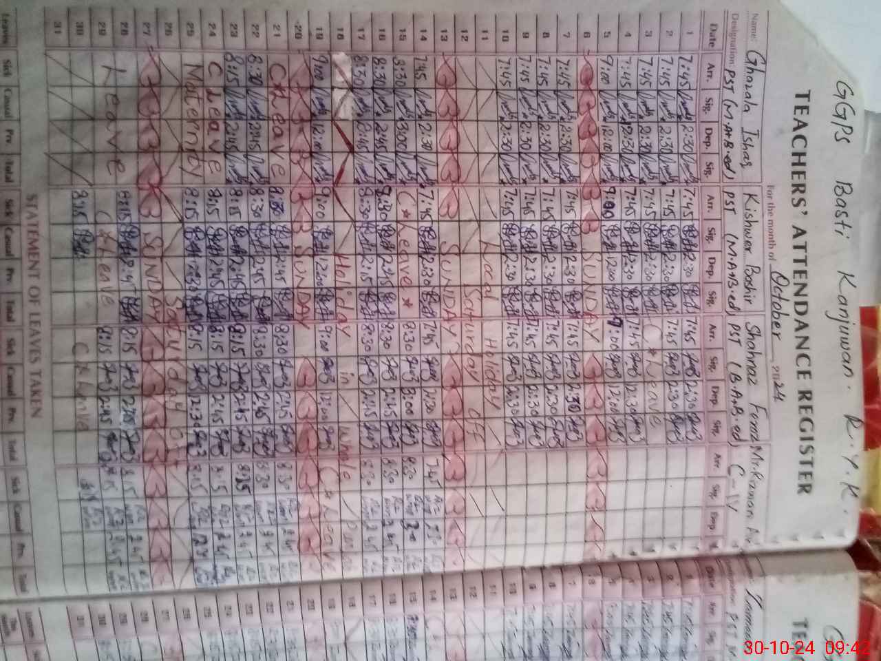 | Remarks (Use Separate Page if Required): 1 Only 01 student attendance register used for six classes 2 Mr Rizwan Anjum class iv still available in this school all temporary attachments cancelled with immediate effect as per letter No CEO DEA RYK 6981 dated 27 October 24 | |||||