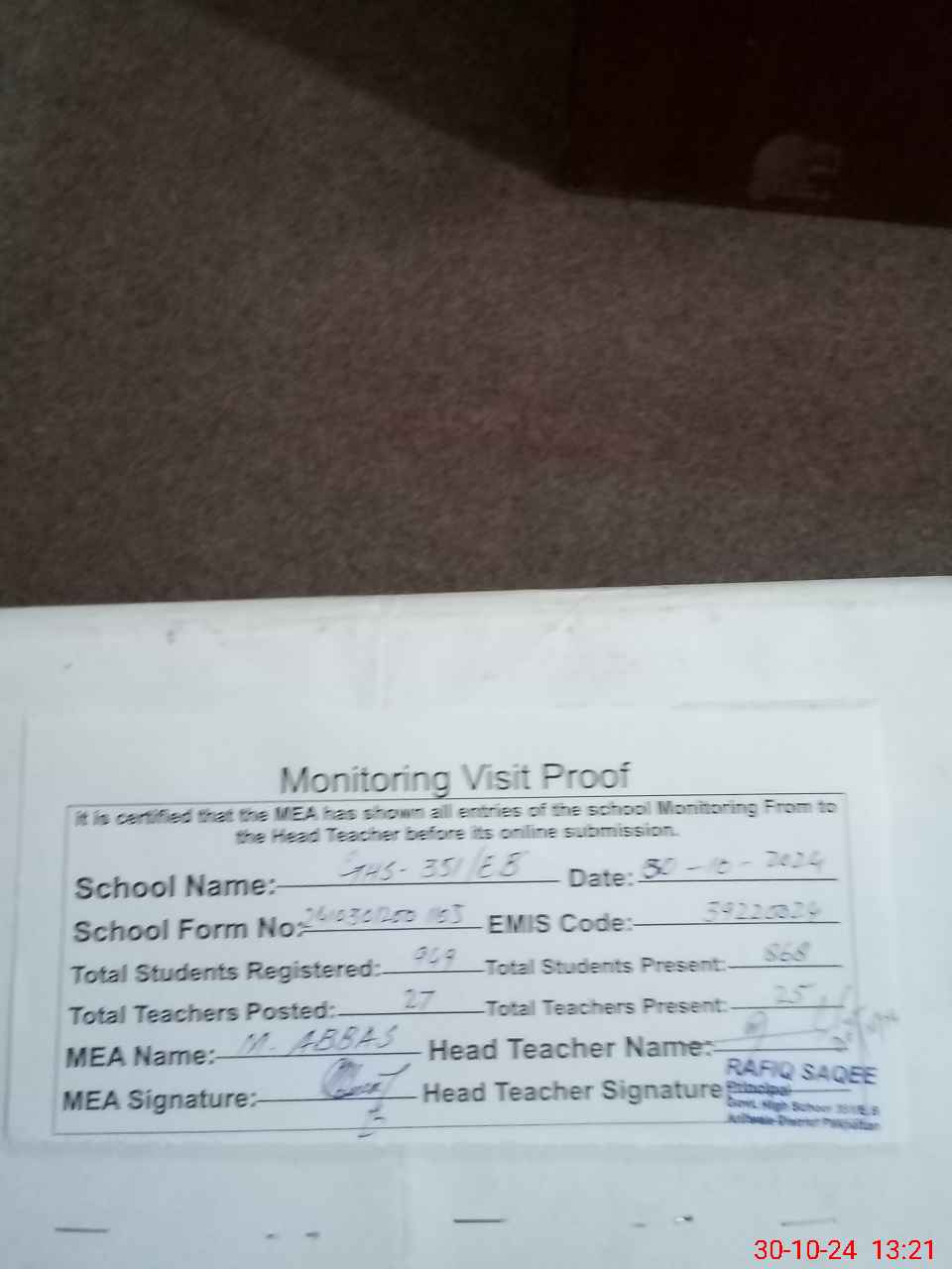 | EMIS Code: 39220024 | Name of School: GHS 351/EB ARIFWALA | |||