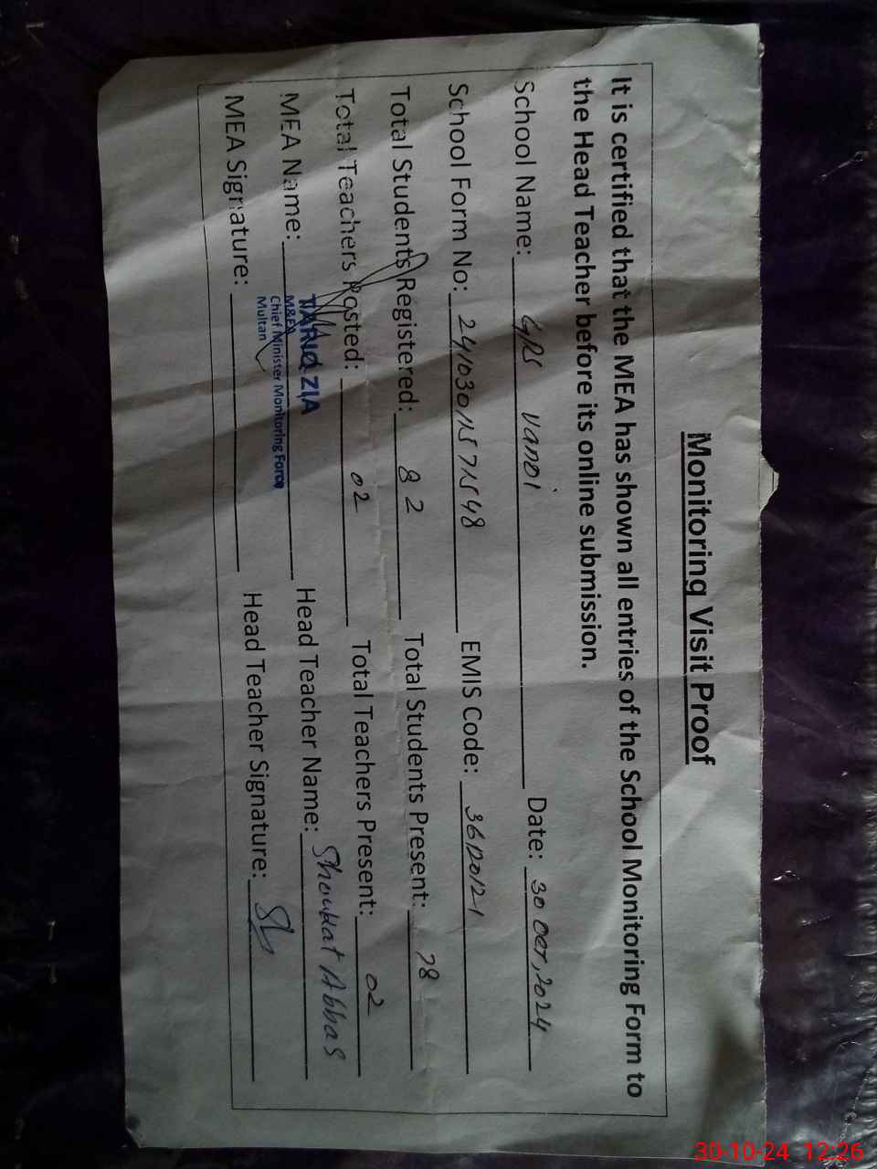 | EMIS Code: 36120121 | Name of School: GPS VANOI MOUZA VANOI P.O MATOTLI TEH.SHUJABAD | |||