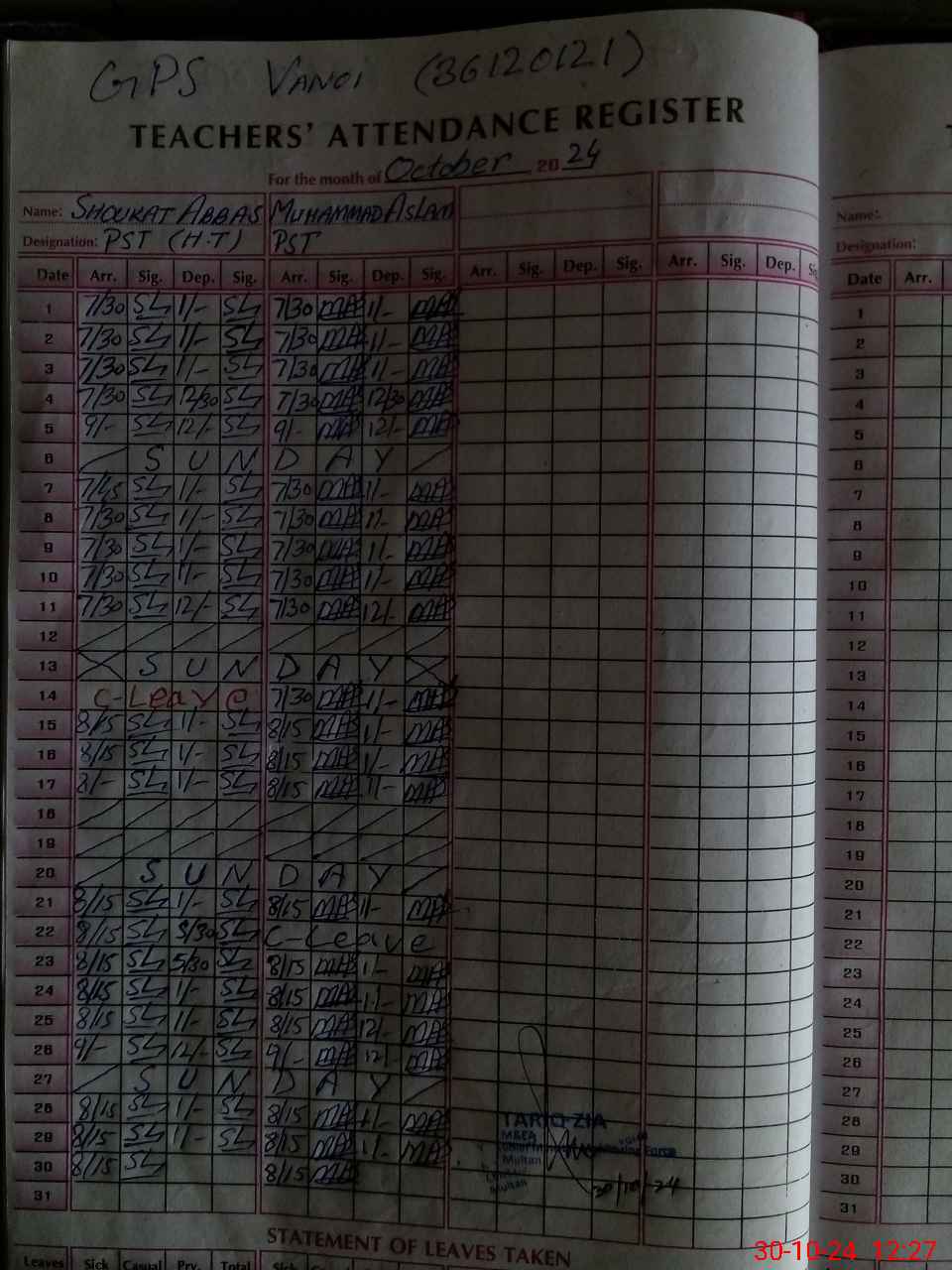 | Name: Sh**** Ab**** Designation: (School Headmaster's/Headmistress's) PST Phone/Cell Number: 03**** |
