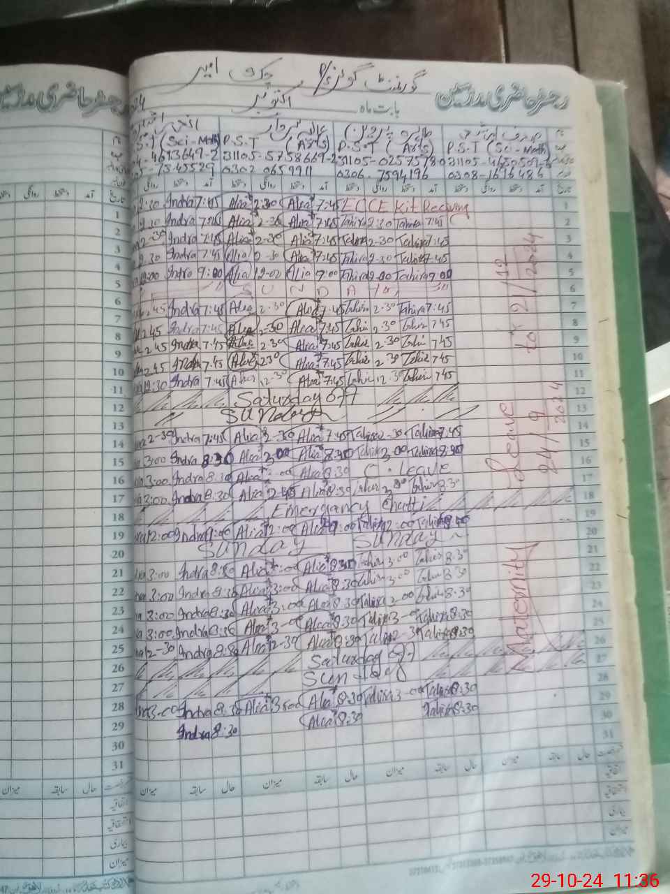 | Leave | Duty | Absent | Maternity | Medical | Ex- Pak |