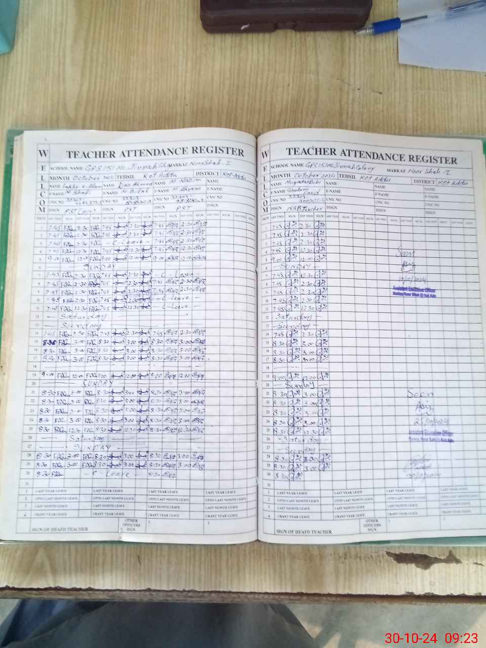 | CNIC | Full Name | Designation | R/C | Absence During Last Calender Month |