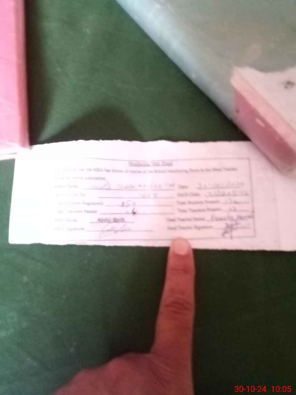 | Attendance Register | Head Teacher | MEA with School | Visit Proof |