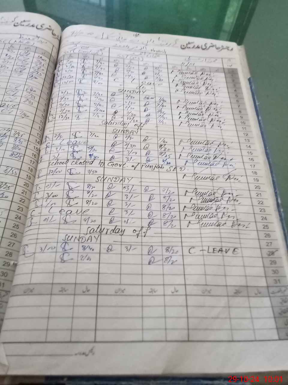 | CNIC | Full Name | Designation | R/C | Absence During Last Calender Month |
