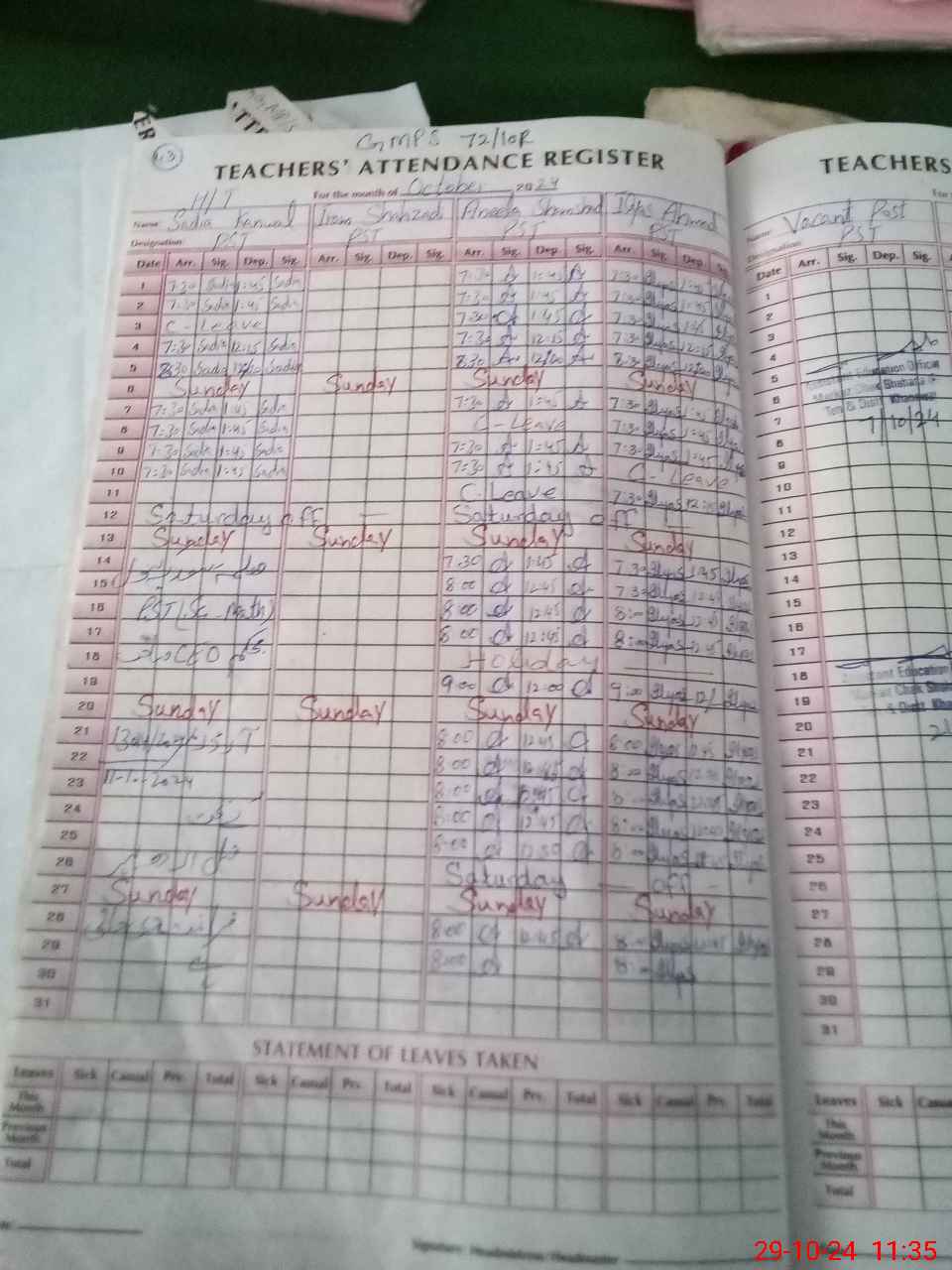 | Name: An**** Sh**** Designation: (School Headmaster's/Headmistress's) PST Phone/Cell Number: 03**** |