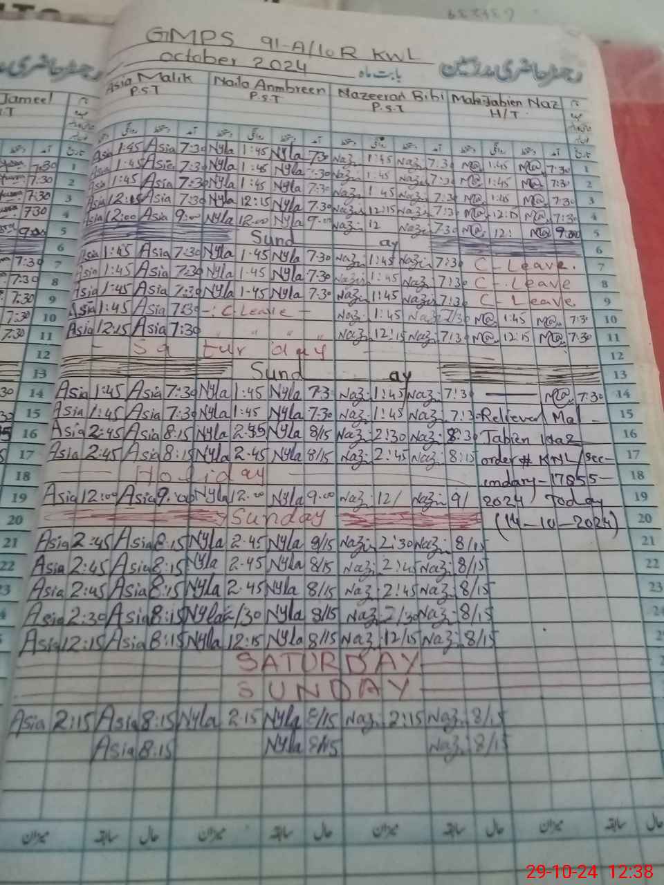 | Leave | Duty | Absent | Maternity | Medical | Ex- Pak |