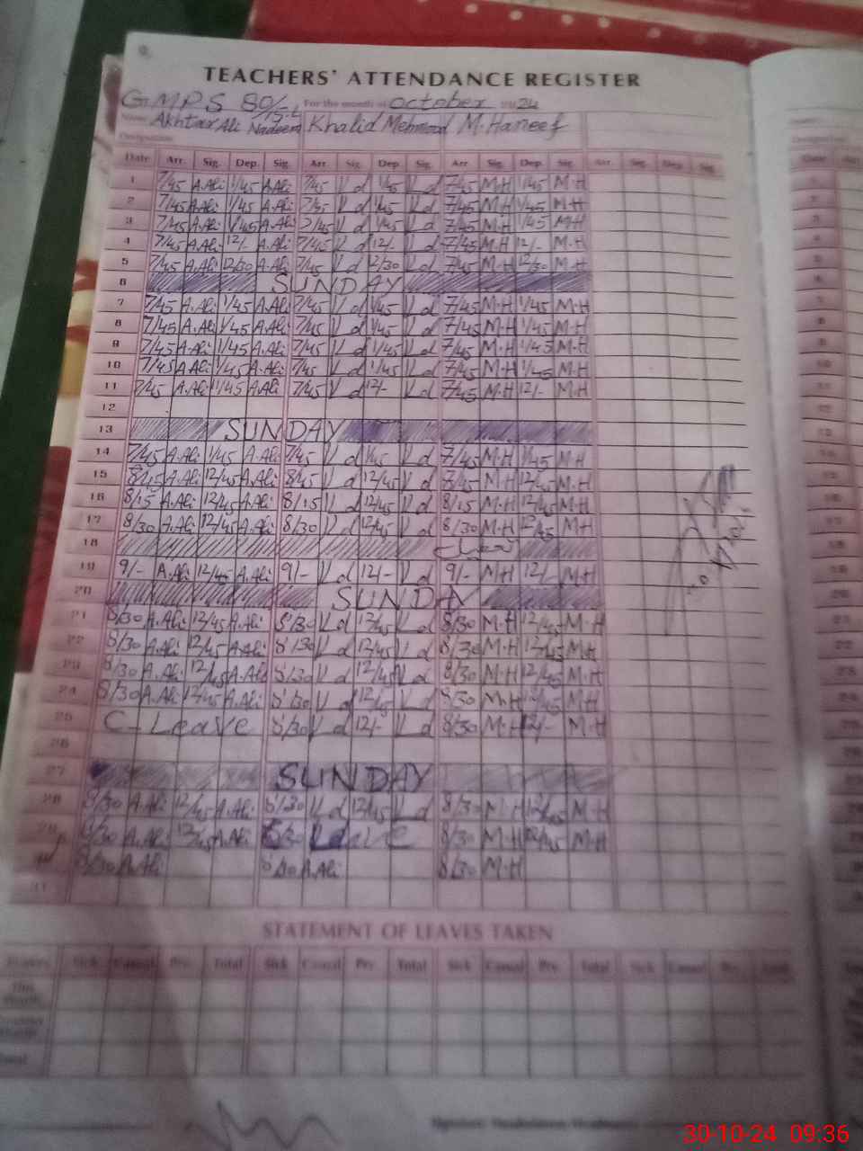 | Monitoring Date: 30-10-2024 | Start Time: 30-10-2024 09:18 AM | End Time: 30-10-2024 10:09 AM | Name of MEA: MU**** SA**** AK**** 13**** | |