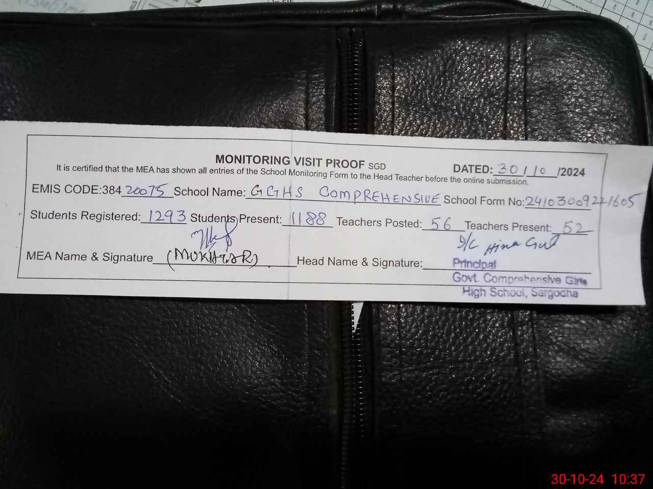 | EMIS Code: 38420075 | Name of School: GGHS COMPREHENSIVE OLD CIVIL LINE SARGODHA | |||