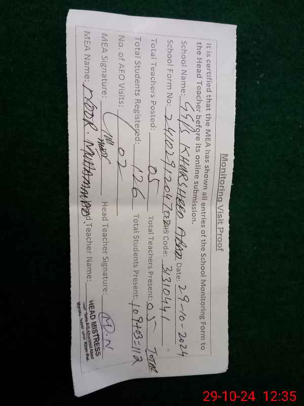 | EMIS Code: 31310441 | Name of School: GGPS KURSHEED ABAD | |||
