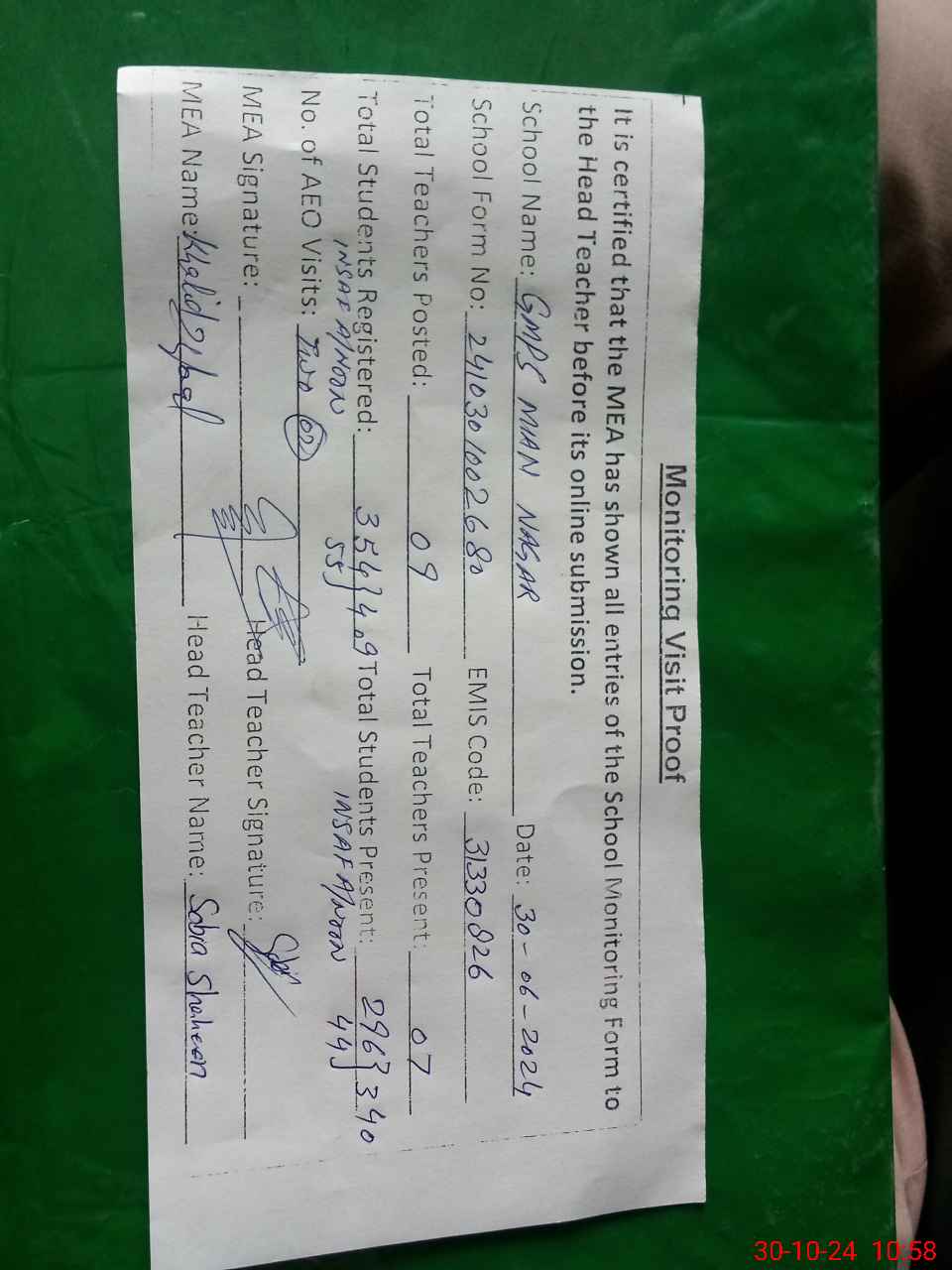 | EMIS Code: 31330826 | Name of School: GMPS MIAN NAGAR | |||