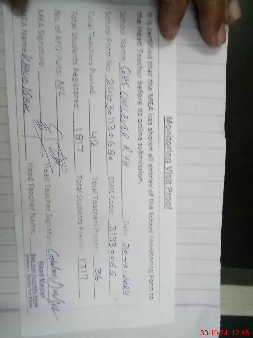| Monitoring Date: 30-10-2024 | Start Time: 30-10-2024 11:30 AM | End Time: 30-10-2024 12:49 PM | Name of MEA: Kh**** Iq**** | |
